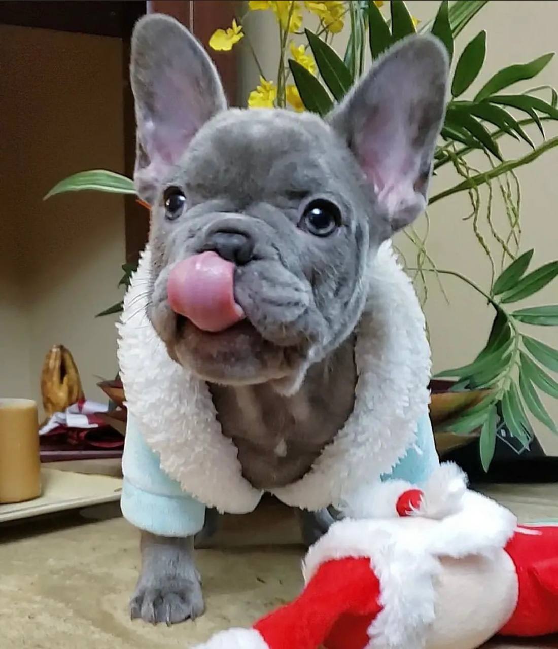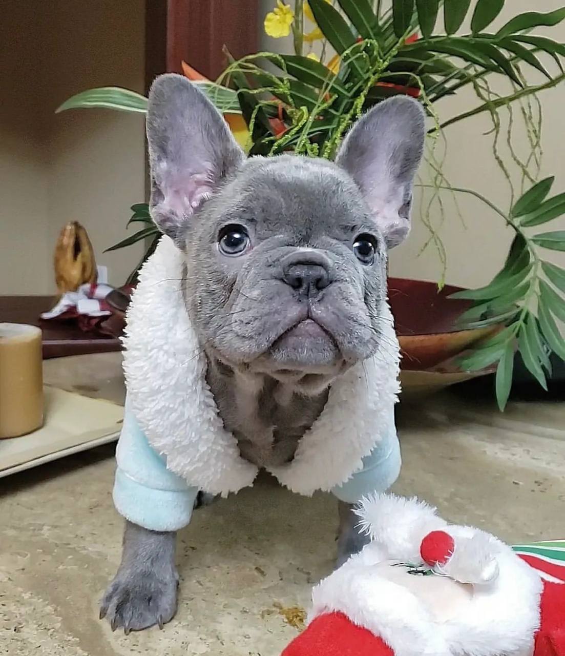 Nina i is difinitely in for christmas and she will be loved to be your additional member to join your pretty family for Val’s day. She comes with paperwork, playing toys and leash with bags of food and manual hand menu on how grow frenchies from 8 weeks to 18 weeks. She’s playful and friendly. Can easily go along with children and other house pets.